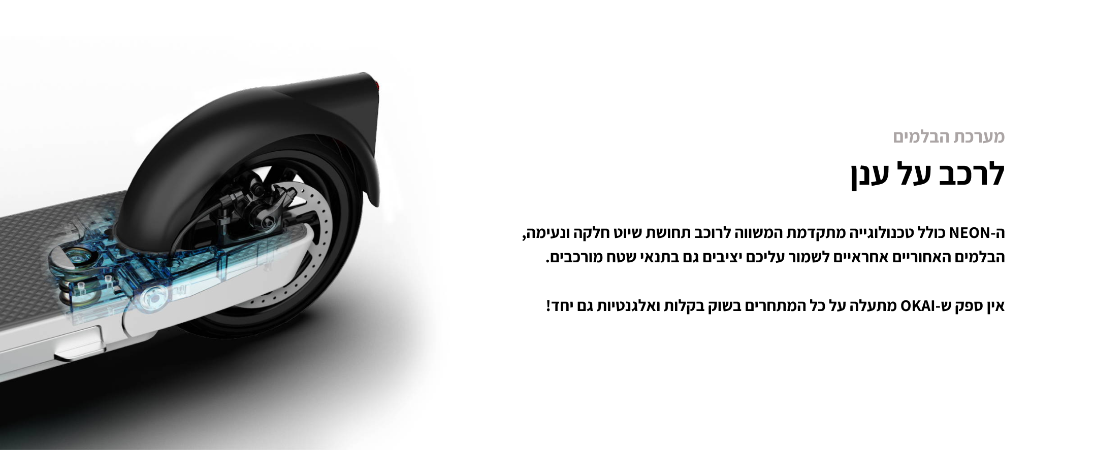 מותג: OKAI | יבואן: בנדא מגנטיק בעמהכירו את ה-NEON, קורקינט חשמלי השוקל כ-16 קג בלבד ומתקפל בקלות כך שניתן לשאת אותו בנוחות ה-Neon יביא אתכם לכל מקום שתרצו להיות בו-עם הספק מרבי של 250W, טווח של 40 קמ ומהירות מרבית של 25 קמש!